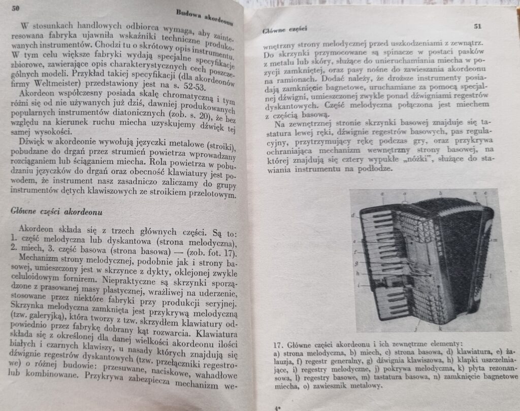 Moim celem jest coś innego: pokazać tę książkę tym, którzy nie mają do niej dostępu. Miałem ogromne szczęście trafić na jej egzemplarz w czasie studiów na Akademii Muzycznej im. I.J. Paderewskiego w Poznaniu. Dziś oryginalne wydanie z 1966 roku można uznać niemal za „świętego Graala” polskiej literatury akordeonowej. Dlatego przygotowałem coś w rodzaju sprawozdania – przegląd i omówienie zawartości tej publikacji, wzbogacone o moje osobiste wrażenia z lektury.