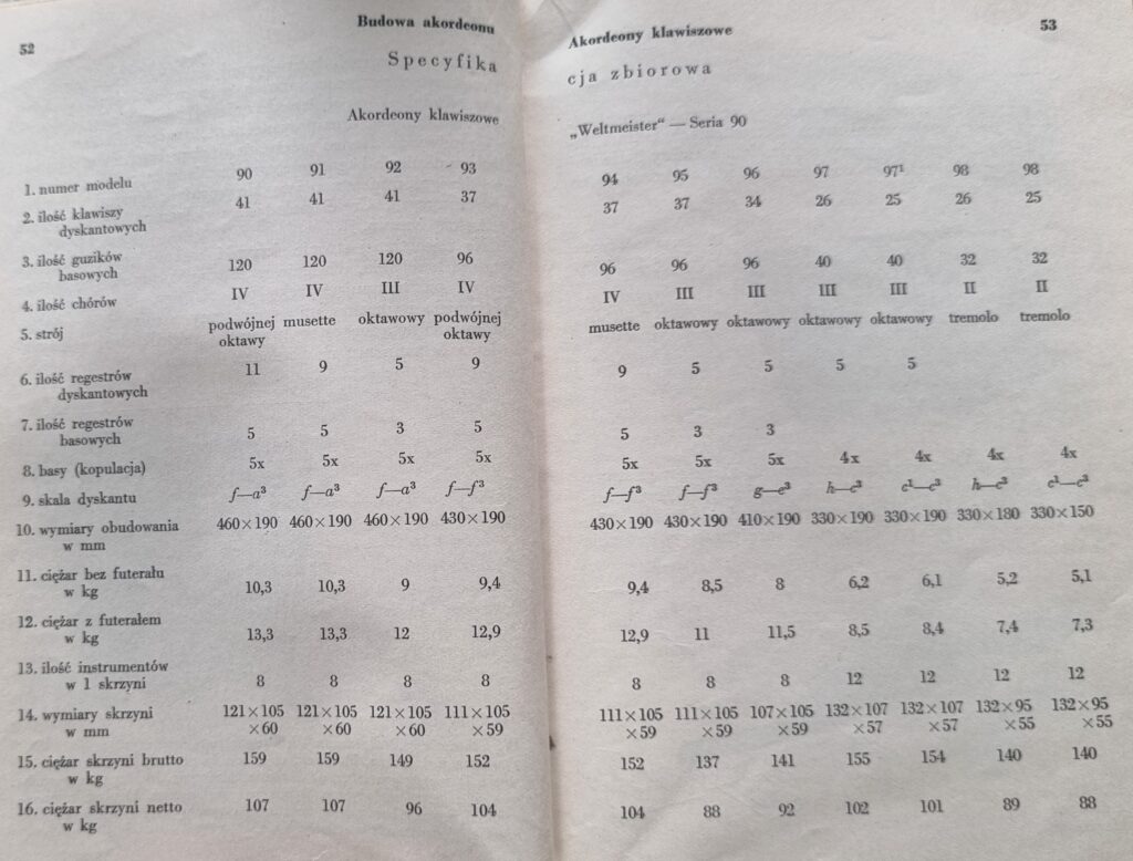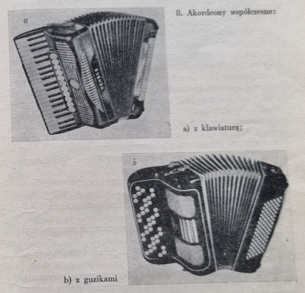 „Zarówno akordeony guzikowe (popularnie w Polsce zwane dzisiaj harmoniami), jak i akordeony z klawiaturą doczekały się w ubiegłym 30-leciu szeregu ulepszeń. Ulepszenia te i zmiany poszły w kierunku: