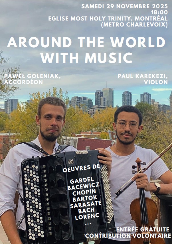 Równolegle ubiegam się o dofinansowanie z programu „Fundusze Polonijne 2026” MSZ. Jeśli środki zostaną przyznane, planuję koncert „The Kaleidoscope of Colors in Polish Music” – w całości oparty na polskiej muzyce, skierowany do publiczności kanadyjskiej. Skład: akordeon, skrzypce, fortepian. Koncert miałby się odbyć w siedzibie Konsulatu RP w Montrealu.