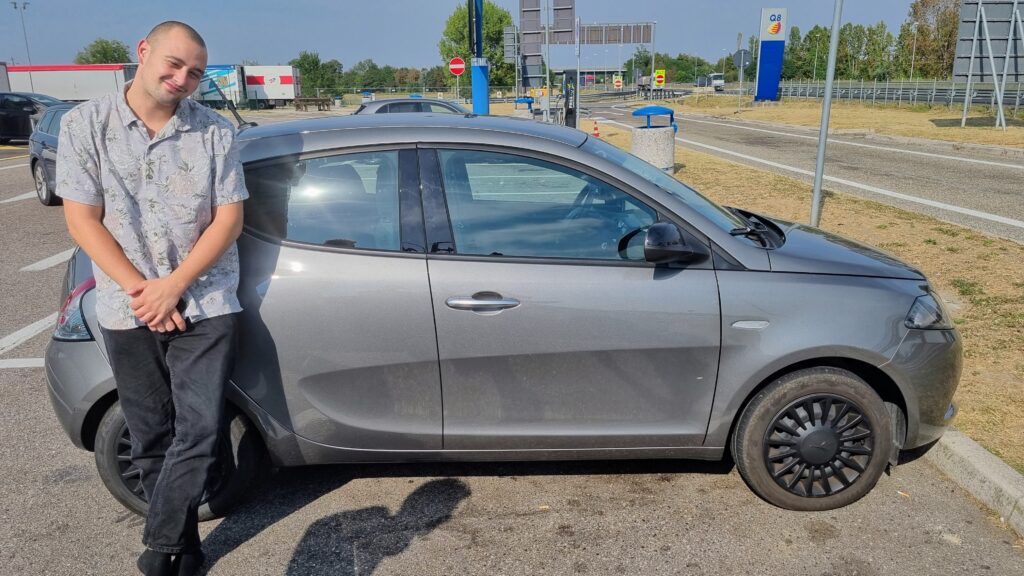 Rezerwując samochód przez internet, lepiej zwrócić uwagę na dopisek „or similar”. My zamiast większego hatchbacka otrzymaliśmy małą Lancię Ypsilon, w którą upchnęliśmy czterech dorosłych, trzy akordeony i walizki – ale samochód dzielnie dał radę.