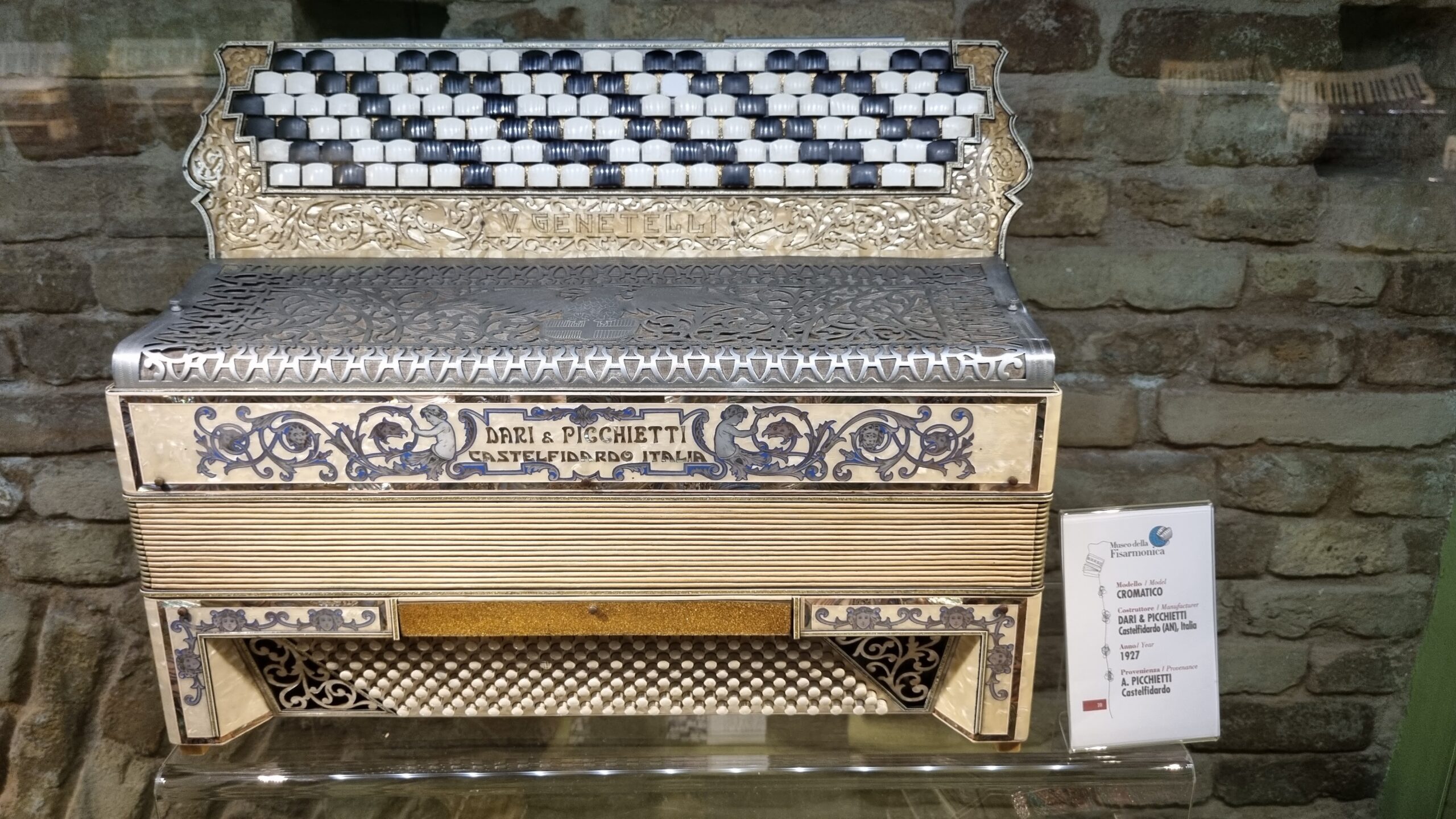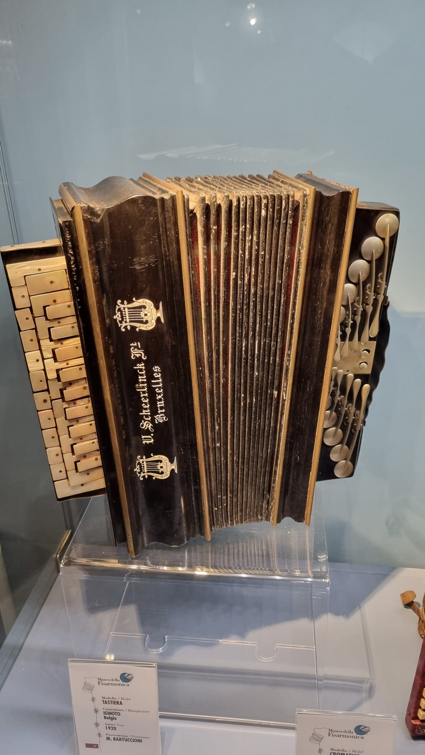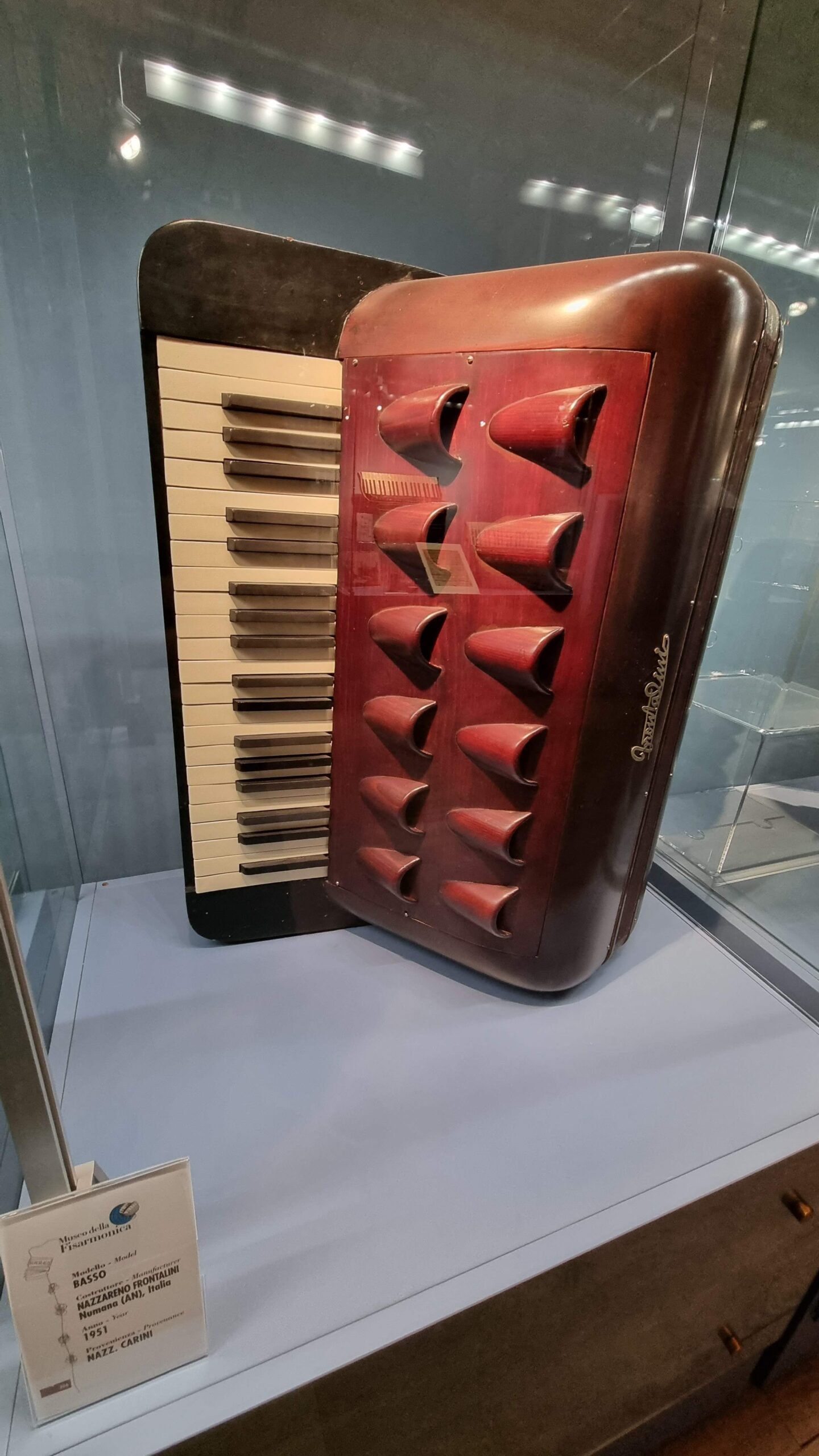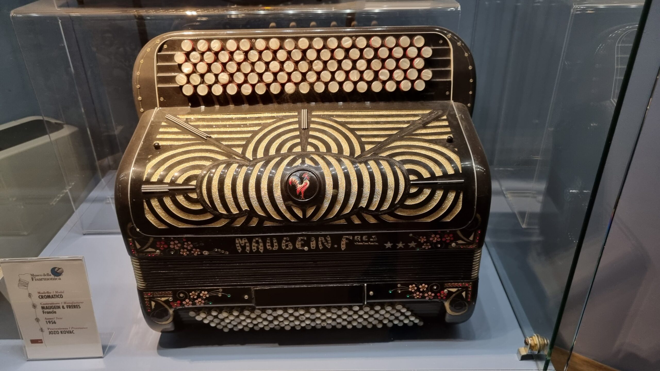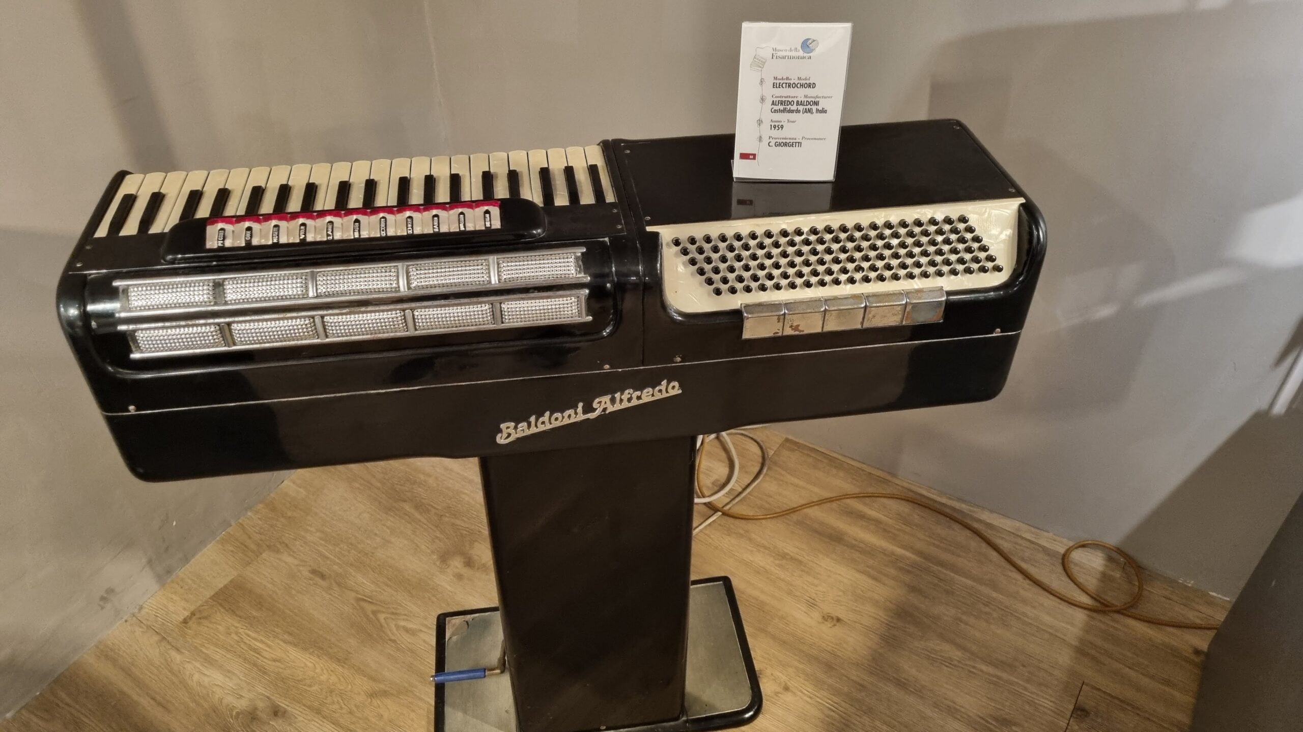 Nie brakuje też eksponatów wyjątkowych ze względu na konstrukcję – m.in. prototyp wykonany przez lutnika Mario Buonoconte na podstawie rysunku z Kodeksu Madryckiego II przypisywanego Leonardo da Vinci, czy akordeony Fisorchestra Frontalini, zaprojektowane tak, by imitować brzmienie orkiestry. W kolekcji znajdziemy również instrumenty używane w filmach, transparentny model firmy Brandoni wykonany z drewna i pleksi, odsłaniający mechanizmy wewnętrzne, a także egzemplarze z ogromnej kolekcji „króla naklejek” Giuseppe Paniniego.