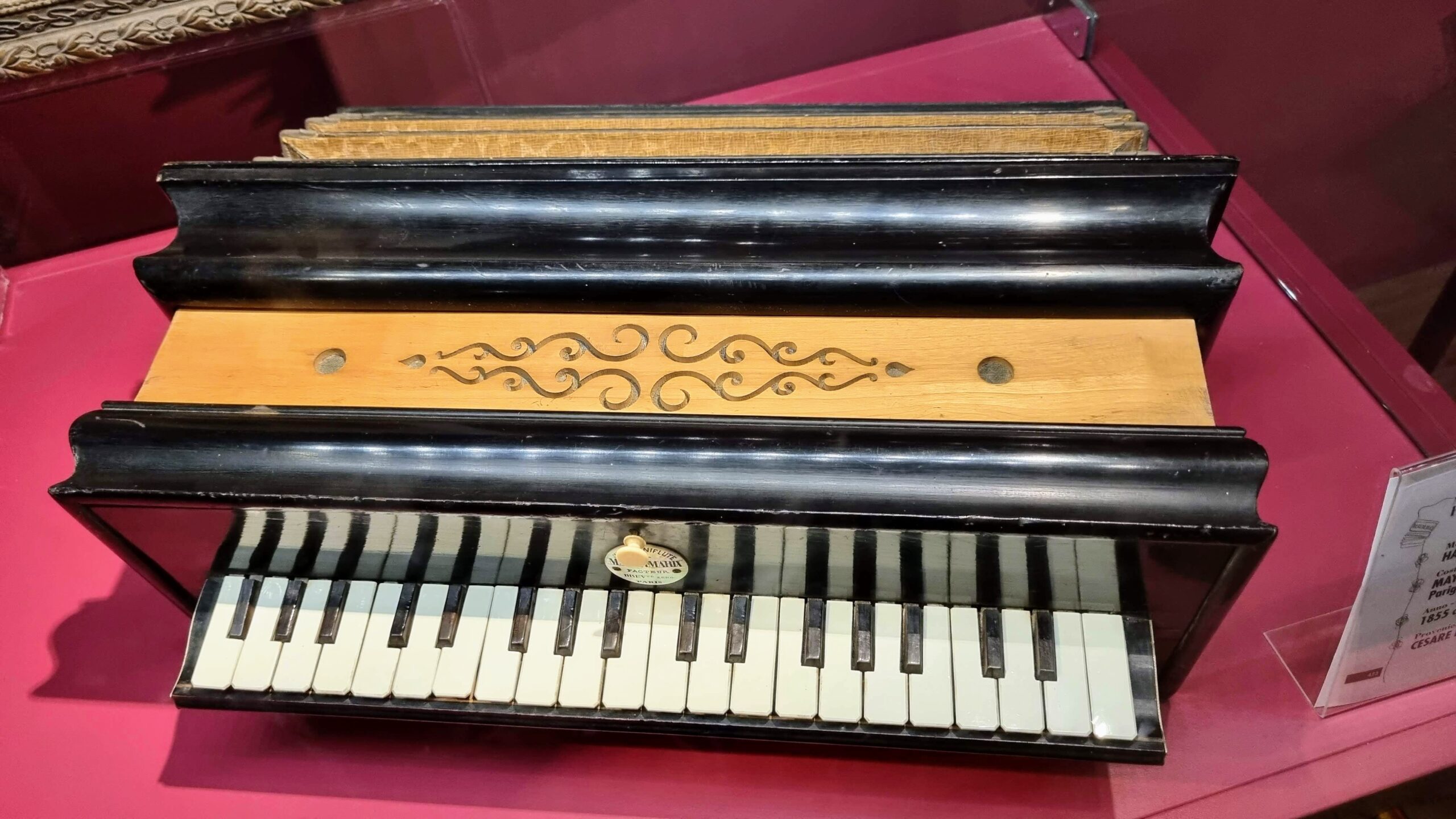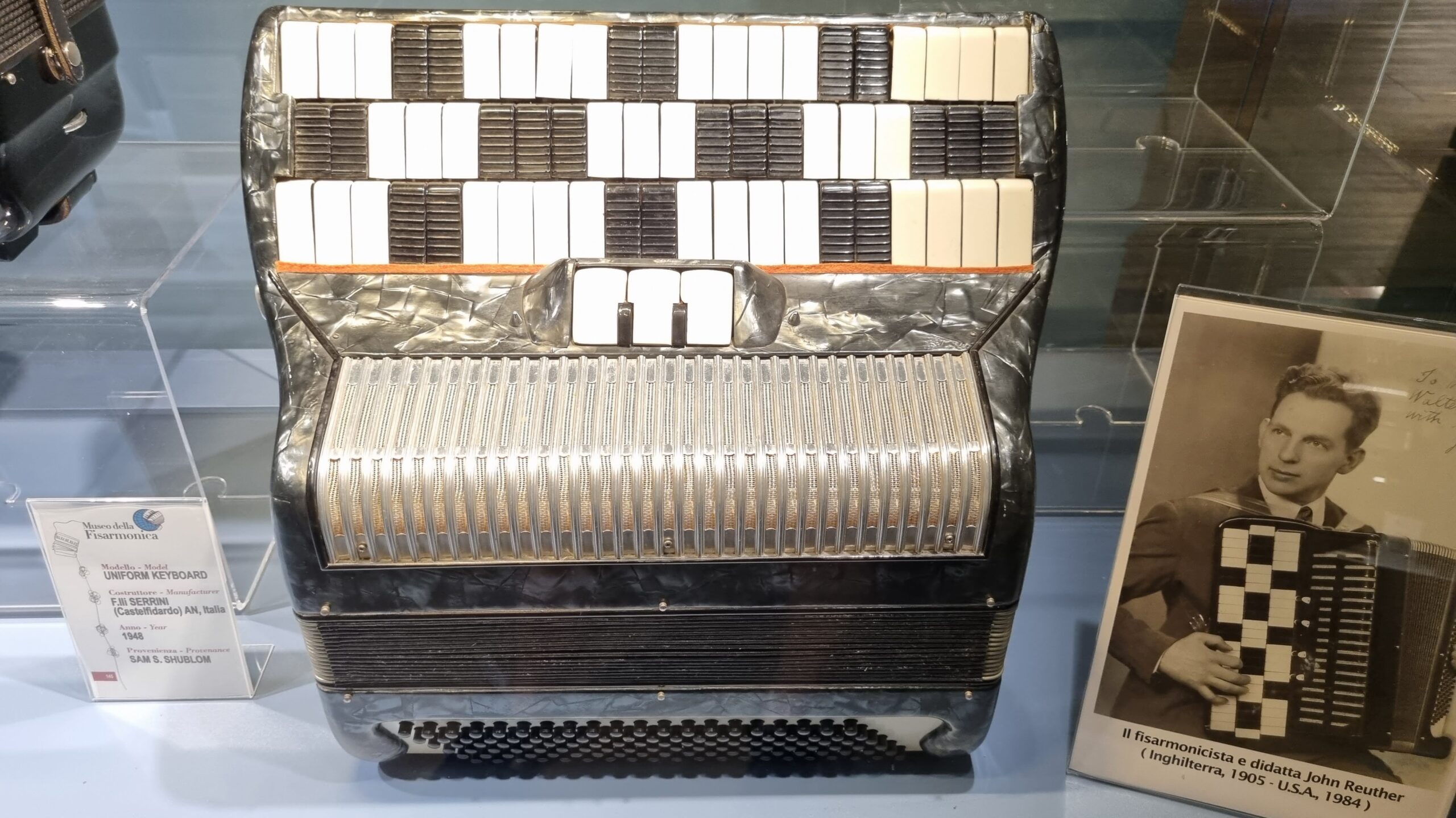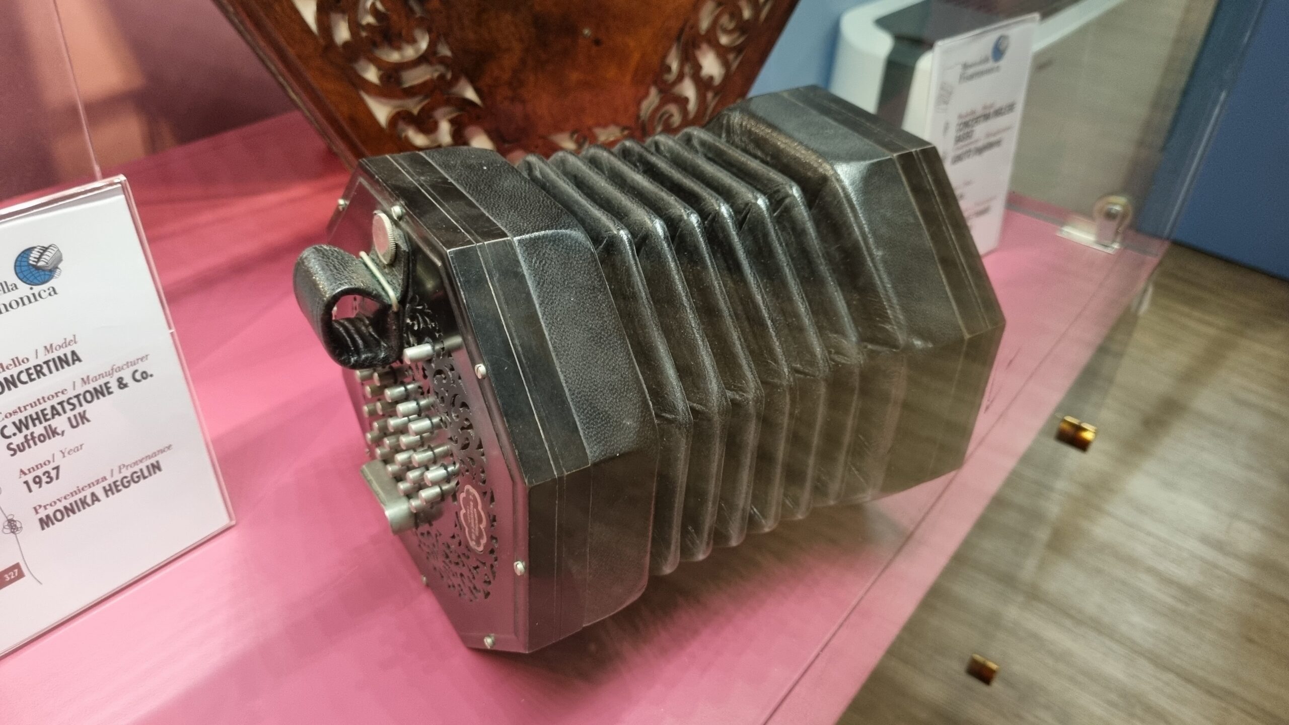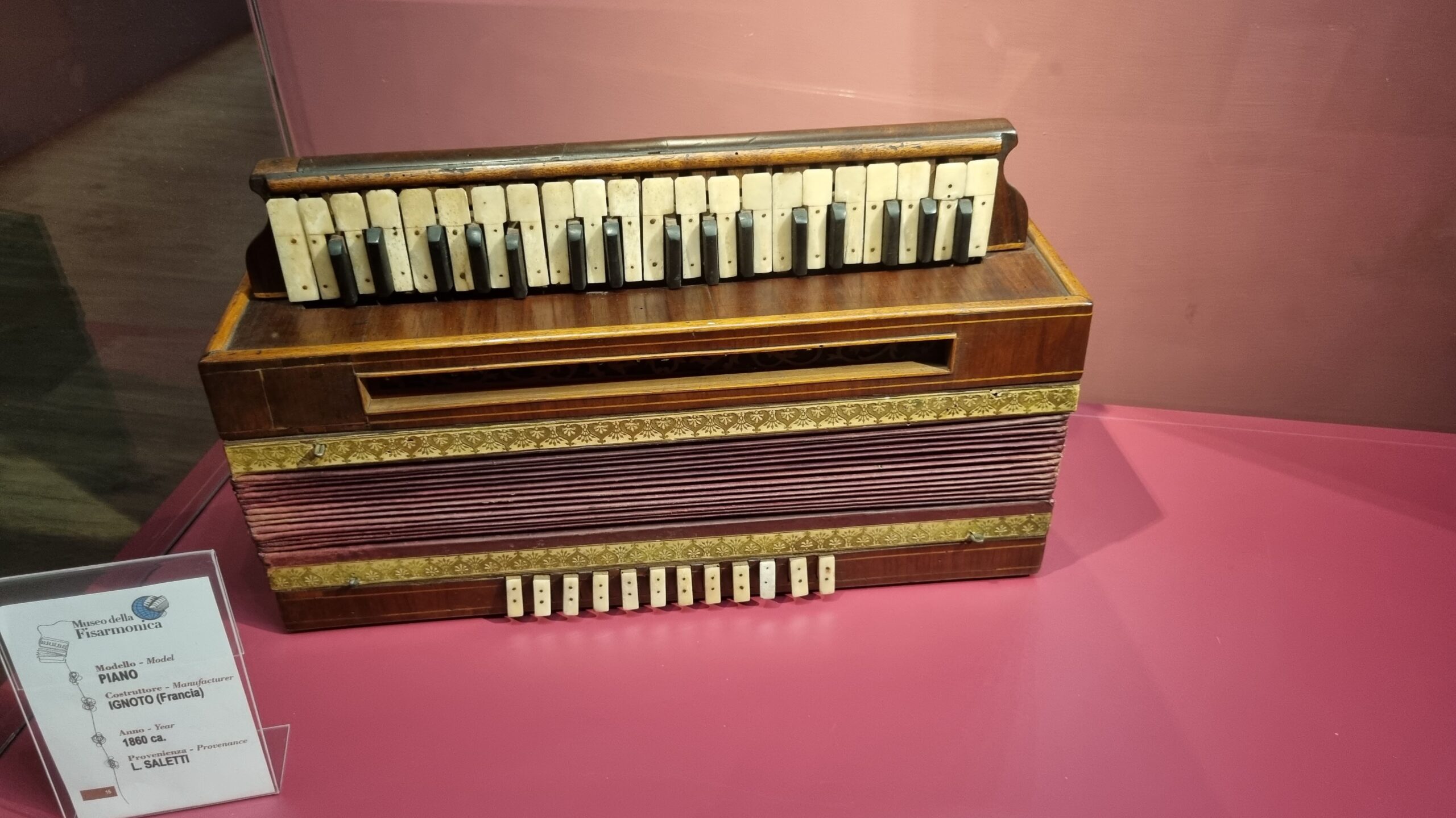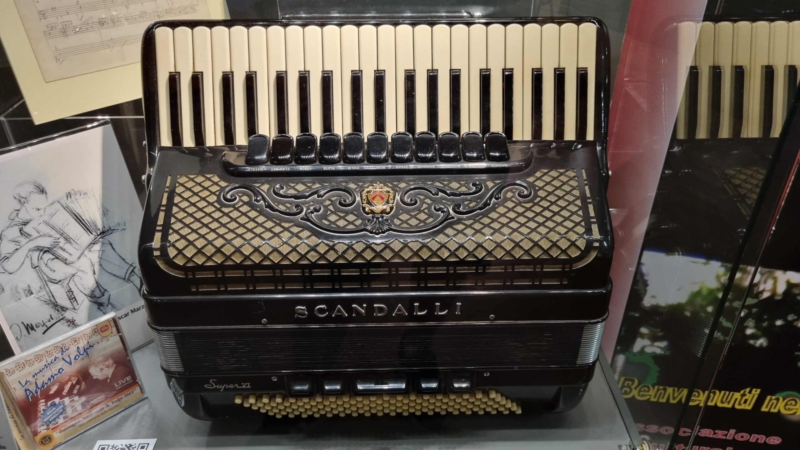 Nie brakuje też eksponatów wyjątkowych ze względu na konstrukcję – m.in. prototyp wykonany przez lutnika Mario Buonoconte na podstawie rysunku z Kodeksu Madryckiego II przypisywanego Leonardo da Vinci, czy akordeony Fisorchestra Frontalini, zaprojektowane tak, by imitować brzmienie orkiestry. W kolekcji znajdziemy również instrumenty używane w filmach, transparentny model firmy Brandoni wykonany z drewna i pleksi, odsłaniający mechanizmy wewnętrzne, a także egzemplarze z ogromnej kolekcji „króla naklejek” Giuseppe Paniniego.
