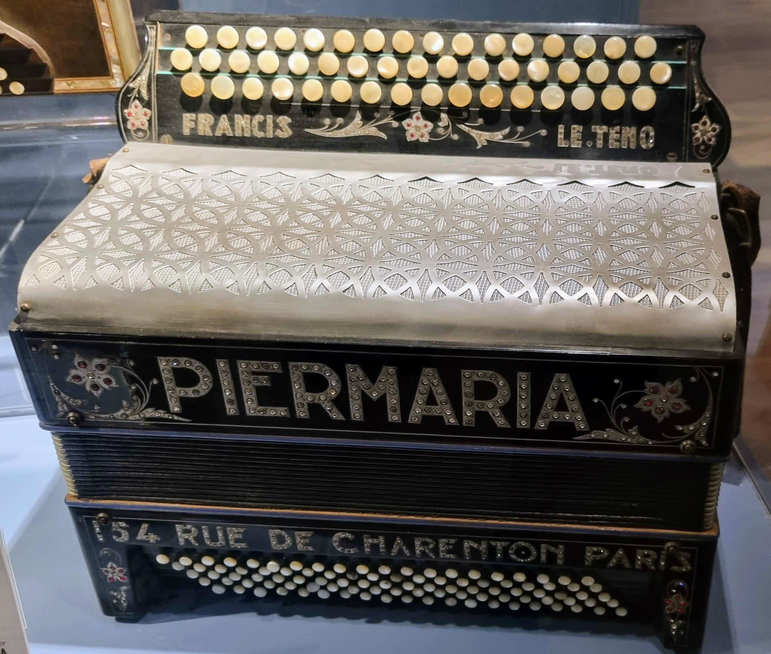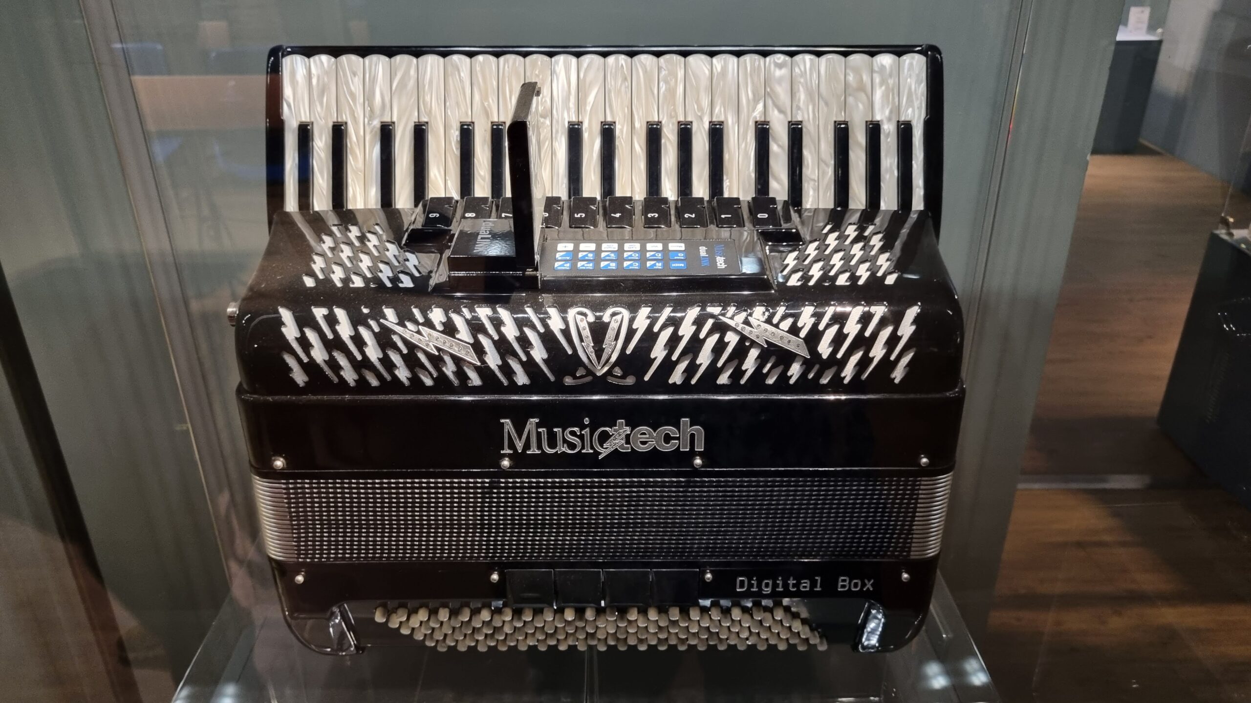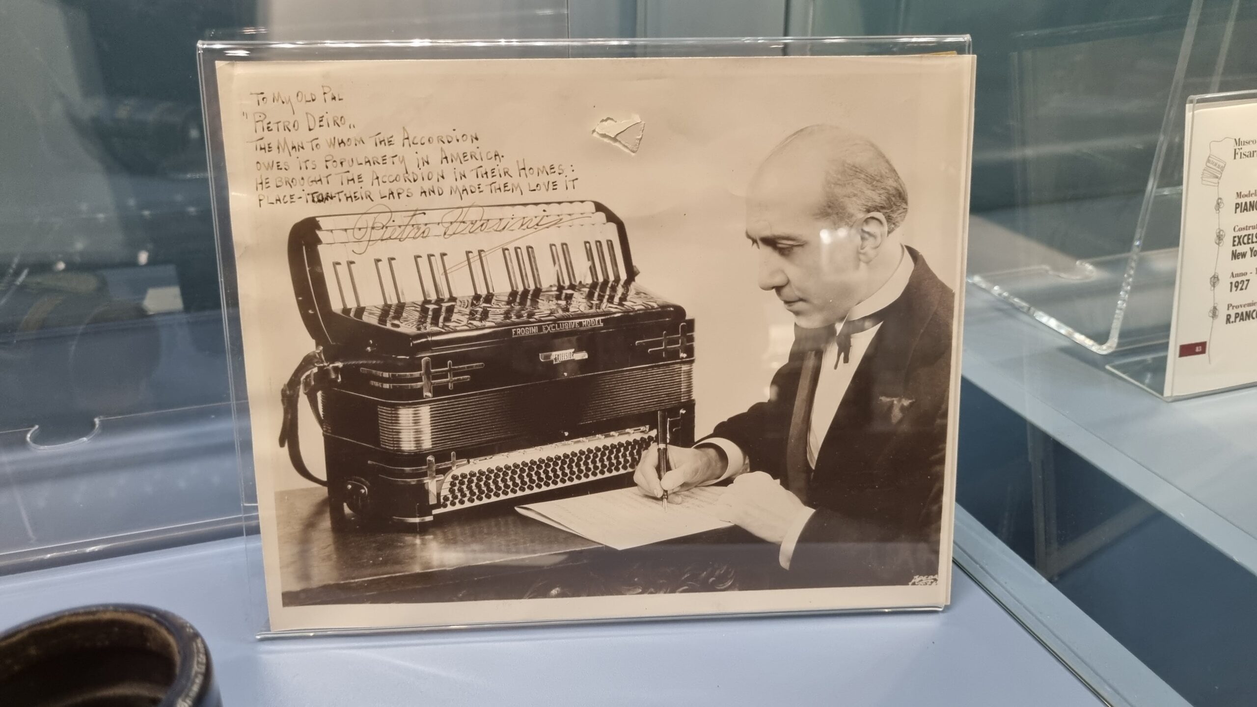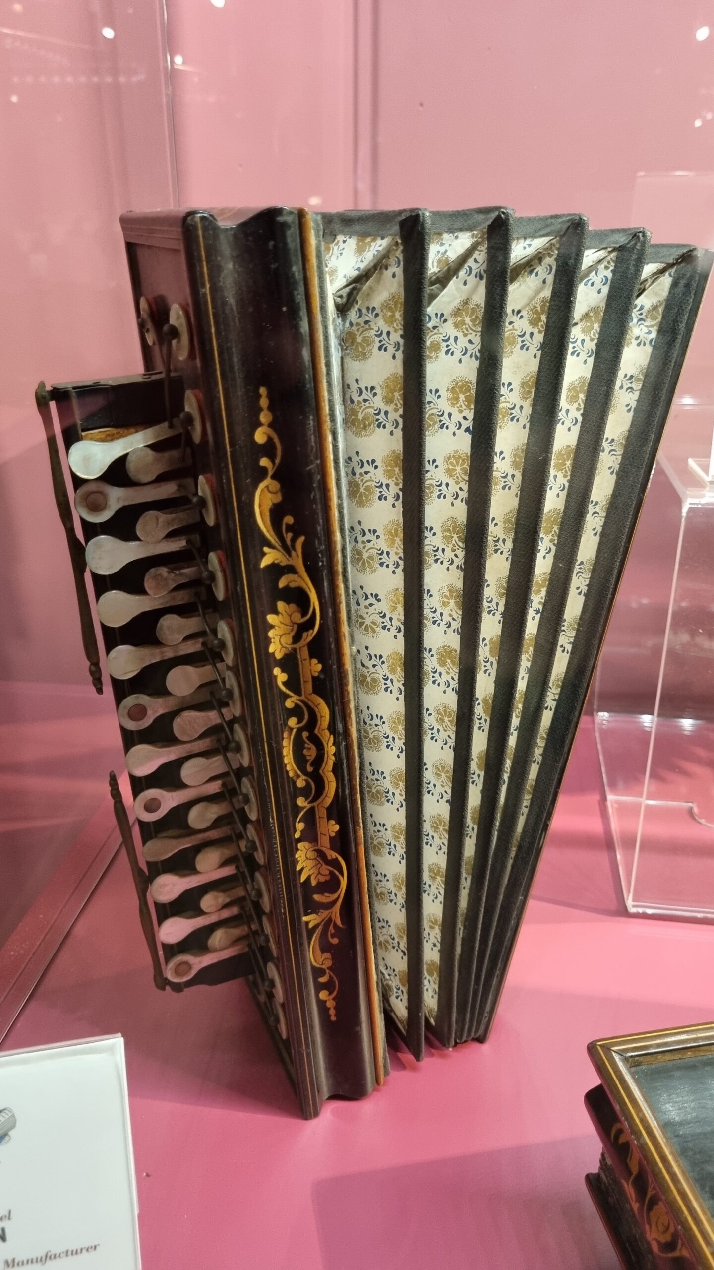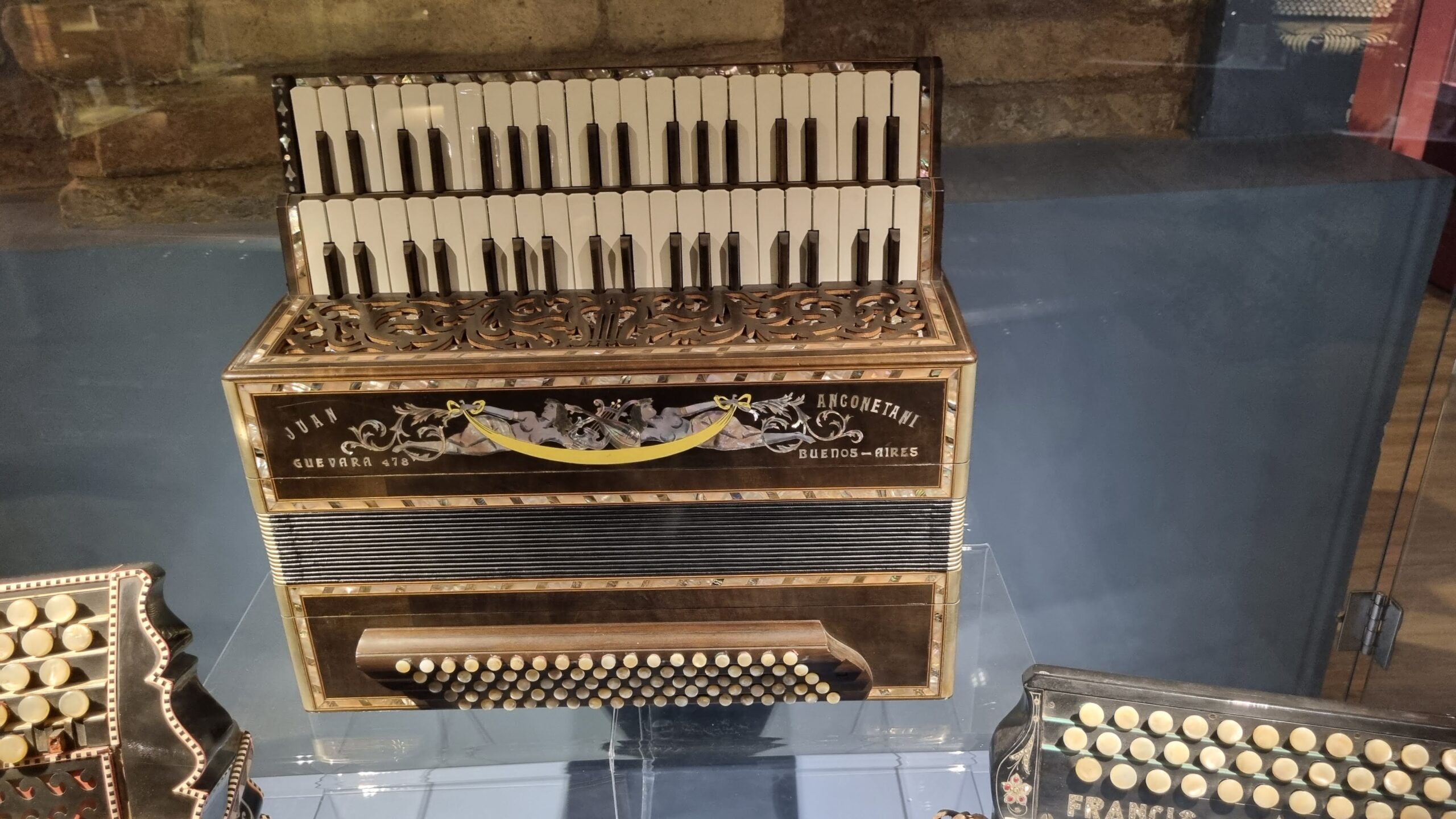 Nie brakuje też eksponatów wyjątkowych ze względu na konstrukcję – m.in. prototyp wykonany przez lutnika Mario Buonoconte na podstawie rysunku z Kodeksu Madryckiego II przypisywanego Leonardo da Vinci, czy akordeony Fisorchestra Frontalini, zaprojektowane tak, by imitować brzmienie orkiestry. W kolekcji znajdziemy również instrumenty używane w filmach, transparentny model firmy Brandoni wykonany z drewna i pleksi, odsłaniający mechanizmy wewnętrzne, a także egzemplarze z ogromnej kolekcji „króla naklejek” Giuseppe Paniniego.
