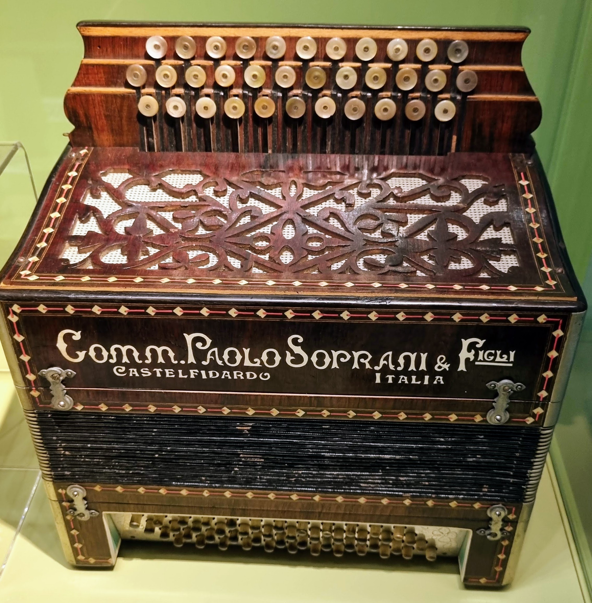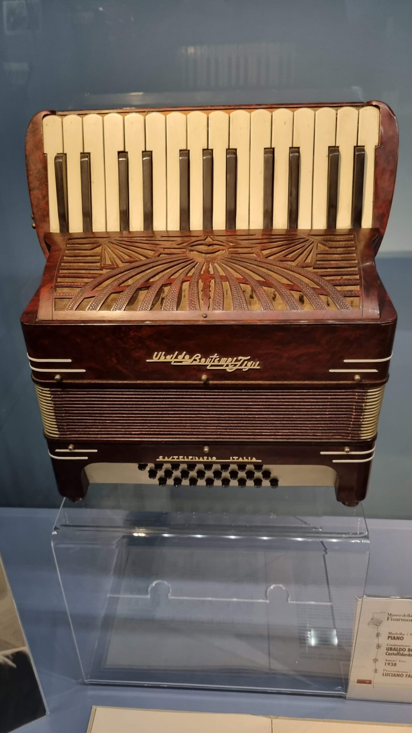 Jednym z najstarszych instrumentów muzeum jest akordeon z 1872 roku autorstwa Paolo Sopraniego, uznawanego za ojca przemysłowej produkcji akordeonów. Obok jego modeli można podziwiać prace rzemieślników z Castelfidardo oraz instrumenty z różnych krajów.